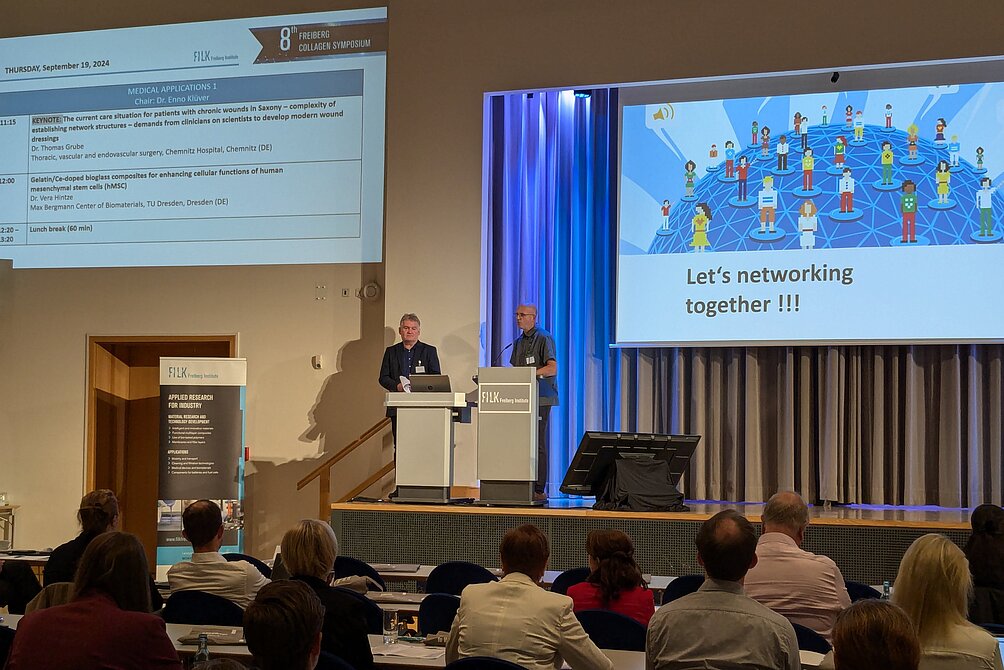 Man könnte also meinen, dass man nach 150 Jahren Kollagenforschung so gut wie alles über diesen natürlichen Rohstoff weiß – nicht so jedoch, wenn man den Vorträgen und Diskussionen des 8. Freiberger Kollagensymposium folgte. Besonders seit sich die Kollagenforschung über die Lederherstellung hinaus auf andere Anwendungsbereiche vor allem in der Medizintechnik- und Pharmaindustrie und Biotechnologie ausdehnte, entstanden neue Fragestellungen und schließlich auch neue Erkenntnisse.